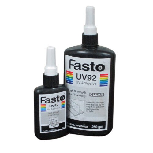 With the valuable assistance of a skilled team of professionals, we are offering an extensive range of high quality UV Adhesive. The entire range of adhesive is made up of premium quality chemical compounds and modular technology under the guidance of skilled professionals as per the set industrial norms. Moreover, this adhesive is widely used in various optical industries and medical technology field. Our offered adhesive is made available in various packaging options for our clients at affordable prices. Fasto UV92 is high performance, very high strength and very low viscosity UV adhesive. It wicks between parts to be bonded. It is suitable for bonding decorative and structural glass.