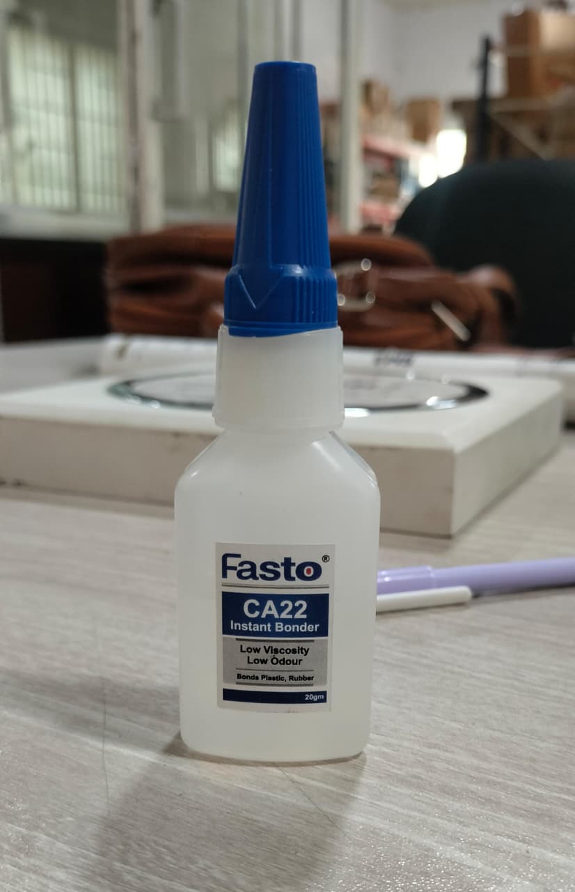 Fasto CA22 is high performance low bloom medium viscosity high strength fast curing specially formulated modified Ethyl - Alcoxy Cyanoacrylate adhesive. Fasto CA22 is suitable for bonding various substrates like plastics, rubbers and few difficult to bond substrate like paper, leather etc. Fasto CA22 offers low blooming. TYPICAL APPLICATIONS Fasto CA22 is suitable for applications like LED lens, bulbs and other electrical & automotive assemblies where blooming is not required. Recommended for use on close-fitting parts, smooth and even surfaces.