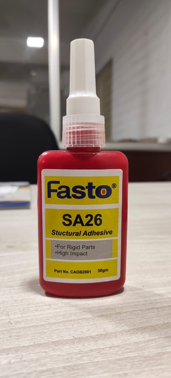 Fasto SA 26 is a High Viscosity Anaerobic type Structural Adhesive suitable for bonding rigid components. Has a good Solvent Resistance. APPLICATION Used for various High Strength Metal Bonding applications, where High Impact Strength is required. An example being Bonding of Magnets in DC Motors .