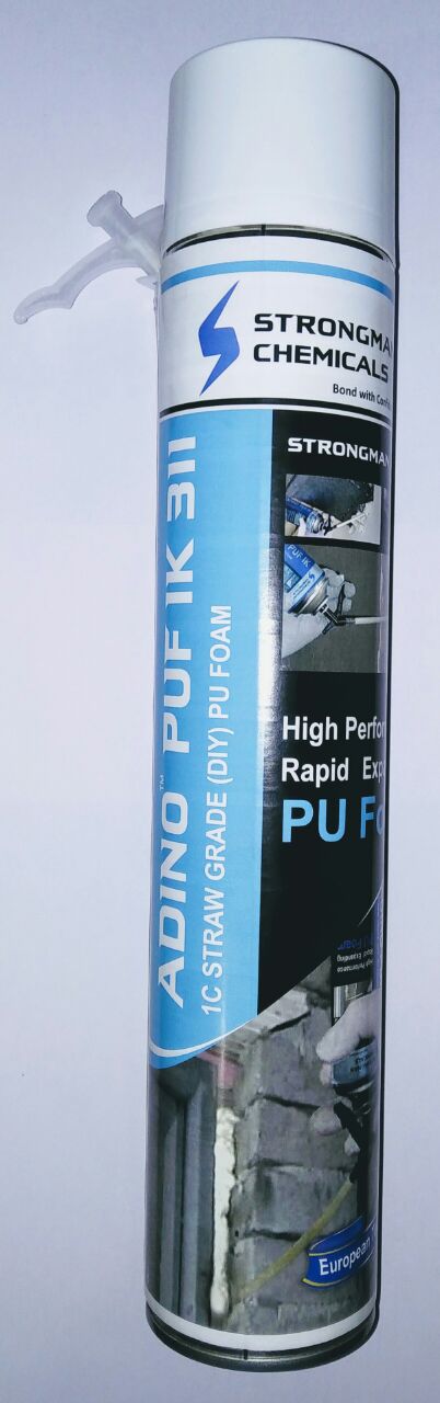 ADINO PUF 1K 1C DIY PU FOAMPOLYURETHANE FOAM SEALANT • One component self expandable polyurethane foam. application with straw/adapter, DIY grade • Sealing for door/window fittings, filling cracks, gapes, holes. sealing roof, wall, floor joints • Thermal insulation. acoustic insulation • B3 flammability class (DIN 4102) • F flammability class (EN 13501-1:2008) • Yield 40 litres (53 times expanding) • Tack free time : 10-12 minutes